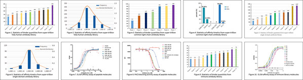 So far,Sanyou has completed over 60 screenings using single-domain antibody library. As shown in Figure 5,through screening and validation across 14 different targets,a total of 9,423 humanized single-domain antibody clones with unique sequences were obtained,and the median number of clones was 606 per target. The affinity of nanobody candidate molecules screened from Sanyou's super-trillion humanized single-domain antibody library has excellent affinity and often reaches pM levels. Figure 6 shows the affinity analysis of full-length constructed molecules. The results reveal that the majority of antibody clones exhibit very high affinities.